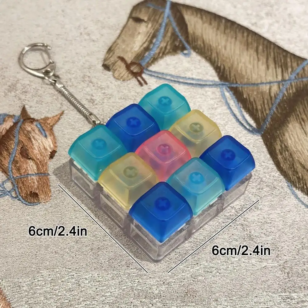POPULAR FIDGET TOY: This is a highly fashionable keyboard fidget toy, composed of 9 buttons and a keychain. Pressing the buttons emits a crisp clicking sound, and the keycaps can be easily removed and re-arranged according to one's preference.STRESS RELIEF: The keyboard clicker's keycaps are designed with curves that fit the curvature of the fingertips, providing a comfortable touch. The buttons emit a crisp yet gentle sound when pressed, and the mechanical repetition of these actions helps alleviate tension and stress effectively.